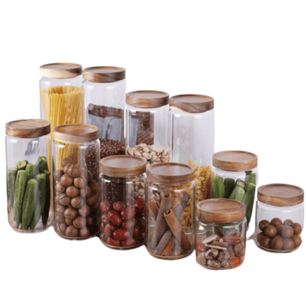 Potes De Armazenamento De Acácia E Vidro