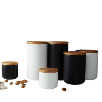 Pote De Armazenamento De Bambu E Cerâmica: Organização E Estilo Para Sua Cozinha Explore a funcionalidade sofisticada do nosso pote de armazenamento de bambu e cerâmica. Seu design clássico de bambu natural e esmalte fosco, oferecendo um contraste elegante e atemporal. Estes potes vedam graças às juntas de silicone, mantendo seus ingredientes frescos e prontos...