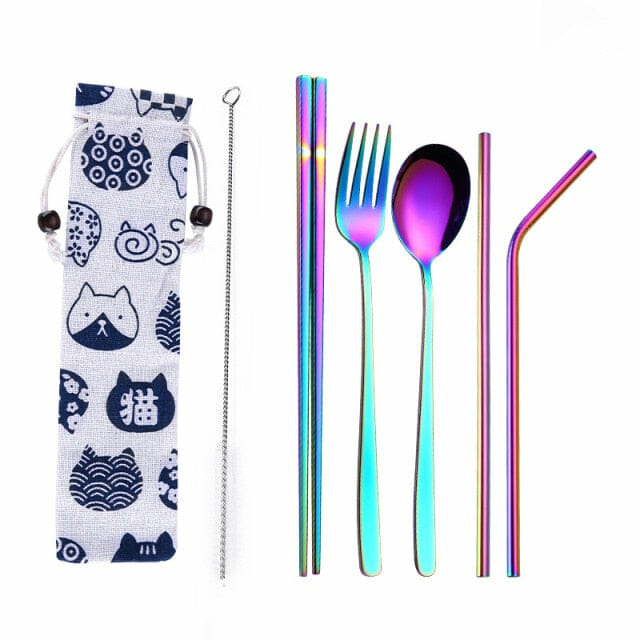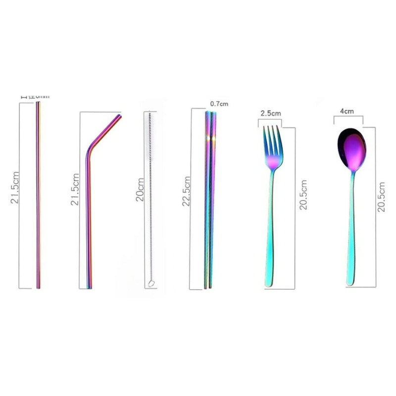 Este conjunto de talheres de aço inoxidável é mais uma escolha simples para suas refeições. É um gesto sustentável e prático para todos os momentos. Com um design compacto, é facilmente transportável para qualquer lugar, garantindo a praticidade sem comprometer o espaço.
